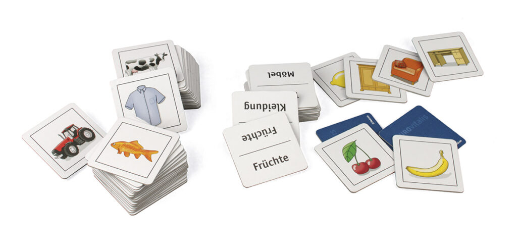Dieses Aktivierungsspiel fördert gezielt Gedächtnis und Wortfindung, indem Bild- und Wortmaterial nach Ober- und Unterkategorien geordnet wird. Es unterstützt die sprachliche Konzeptbildung und ist sowohl eigenständig als auch ergänzend zum „Basisprogramm“ einsetzbar. Komplett überarbeitet in der Neuauflage 2018.
