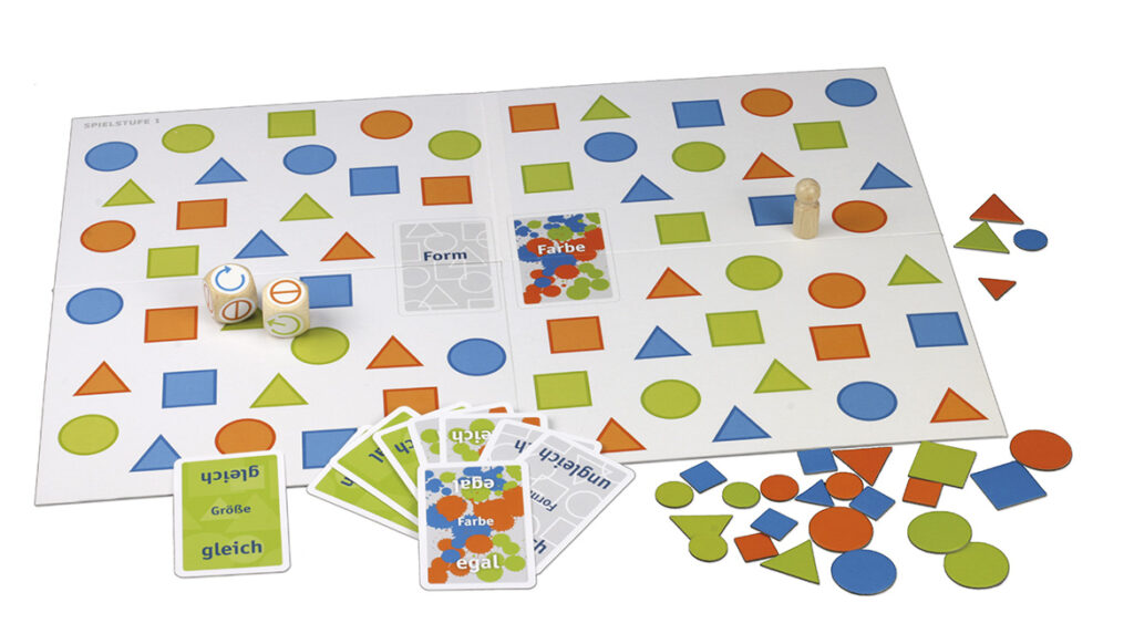 Dieses Aktivierungsspiel trainiert Aufmerksamkeit und Konzentration, indem Nutzer Farb-, Form- und Größenmerkmale kombinieren müssen. Es eignet sich ideal zur Förderung der geistigen Flexibilität und kann sowohl eigenständig als auch ergänzend zum „Basisprogramm“ eingesetzt werden.