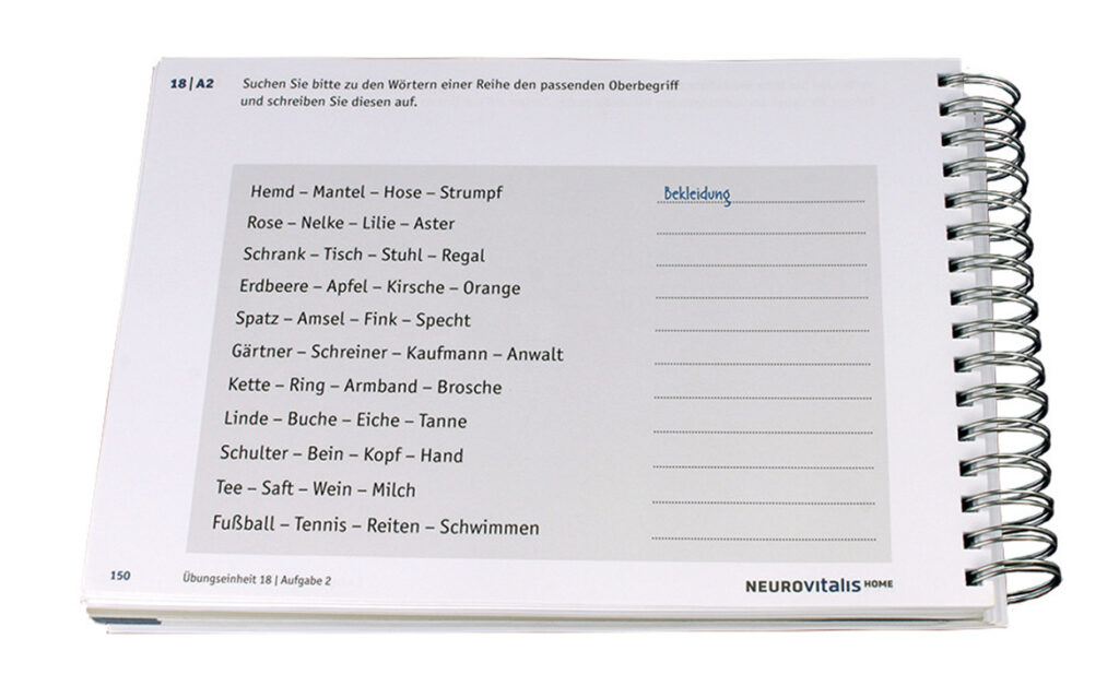 „NEUROvitalis HOME“ ist ein kompaktes, wissenschaftlich fundiertes Trainingsprogramm für zuhause oder die Einzeltherapie. Mit 180 Übungen auf zwei Schwierigkeitsstufen fördert es gezielt Gedächtnis, Aufmerksamkeit, Planungsfähigkeiten und Wortflüssigkeit. Die beigefügte Lösungsübersicht ermöglicht eine einfache Erfolgskontrolle. Optimal zur Prävention oder zur Stabilisierung nach einem Gruppentraining.